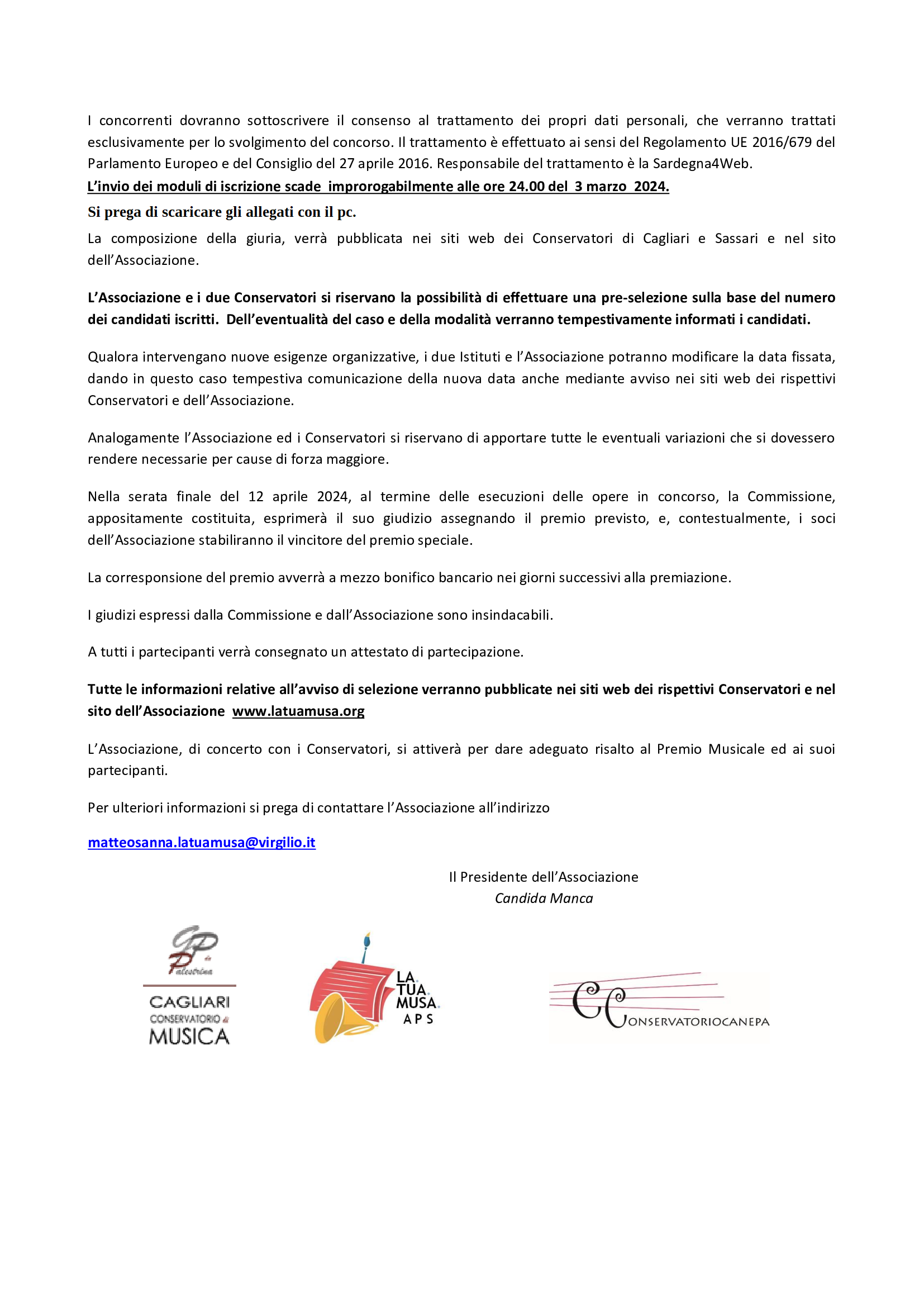 • Finale del 12 aprile 2024 – concorso musicale “Matteo Sanna La.Tua.Musa” VIII edizione
